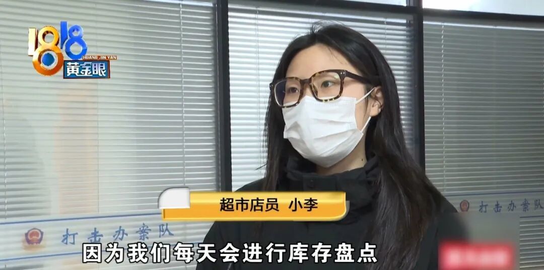超市店员 小李:因为我们每天会进行库存盘点,然后那时候就发现盘面上面有空的一个位置,然后我们去查那个商品流水,是没有的。所以说我们当时就去查了监控,就发现这个女士,然后就直接往包里面装。